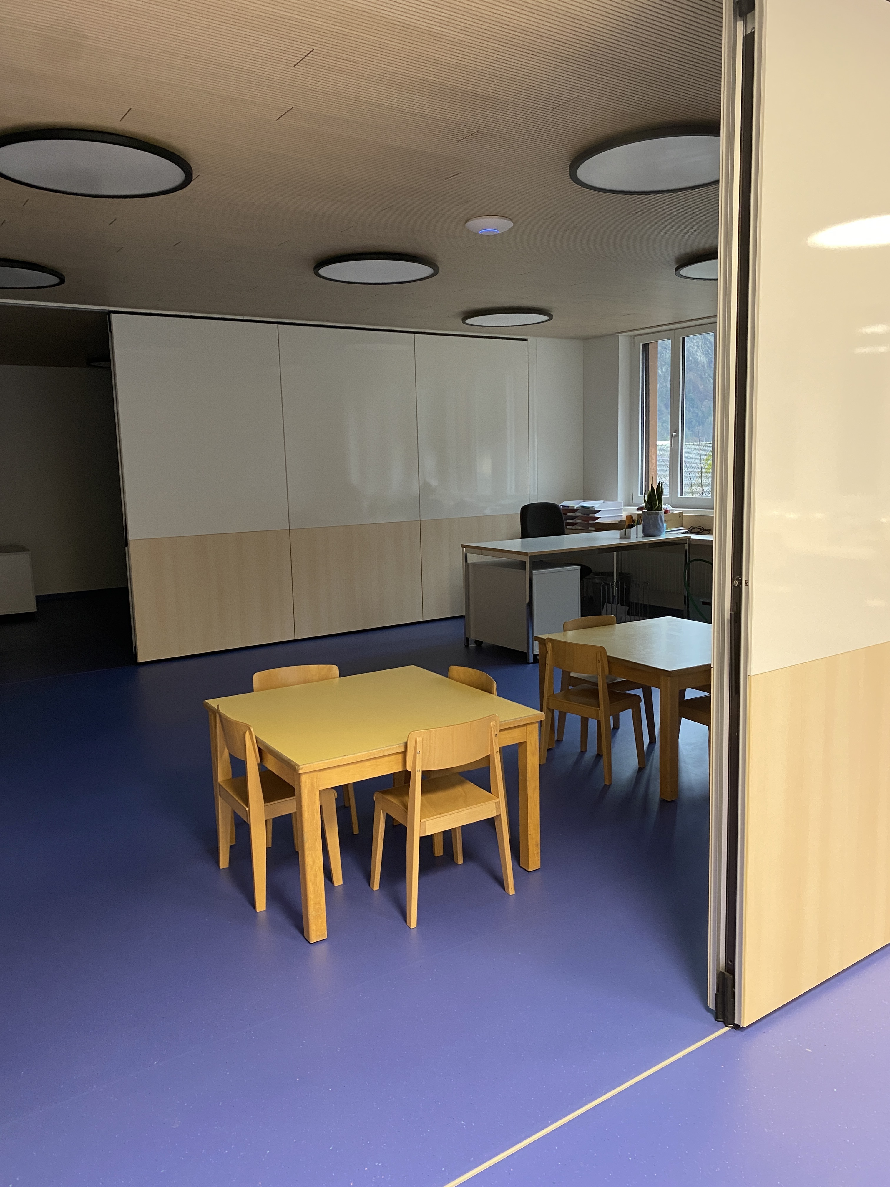 Die bisherigen Schulräume in den ehemaligen Hauswartewohnungen wurden durch zeitgemässe Schulräume für Logopädie, Schulische Heilpädagogik, Gruppenräume und Deutsch als Zweitsprache-Unterricht ersetzt. Ein Lift erschliesst nun das Schulhaus behindertengerecht. Während der Renovation wurden die Schülerinnen und Schüler im Stegmattsaal unterrichtet. Die Schule freut sich sehr über die toll gestalteten Schulräume.